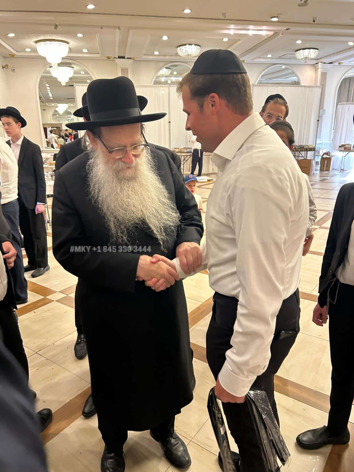 After Shacharis in Linden, en route to Newark Airport, Rav Yerucham Olshin with the Rebbe of Kosson, sharing that the Rebbe’s grandfather, Rav Pinchas Shalom, was sandak at his bris