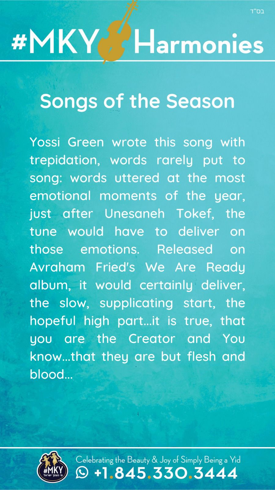 Songs of the Season: Chamol al Maasecha