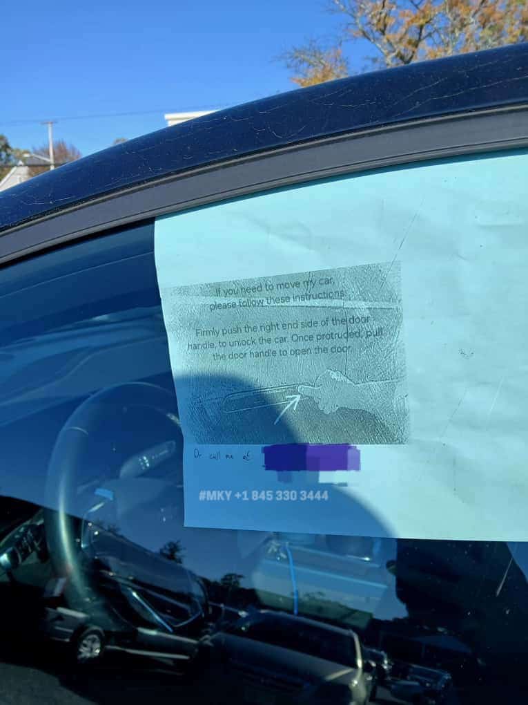 In the BMG parking lot, the custom has always been to leave keys in the vehicle in case someone needs to get out - but with electric cars, new instructions are needed (Via TRC)