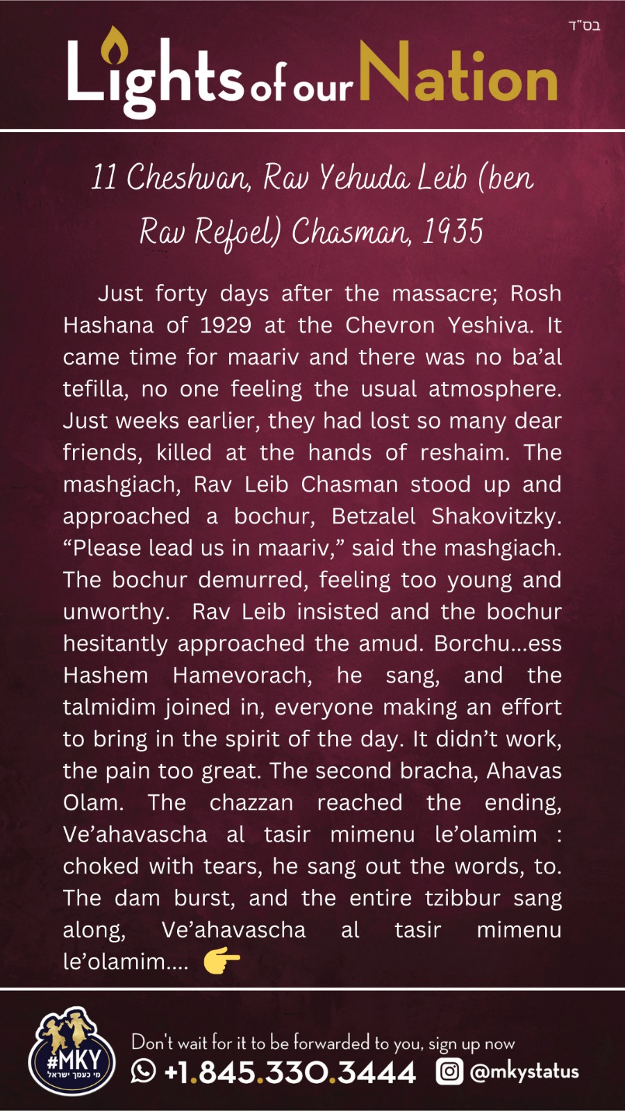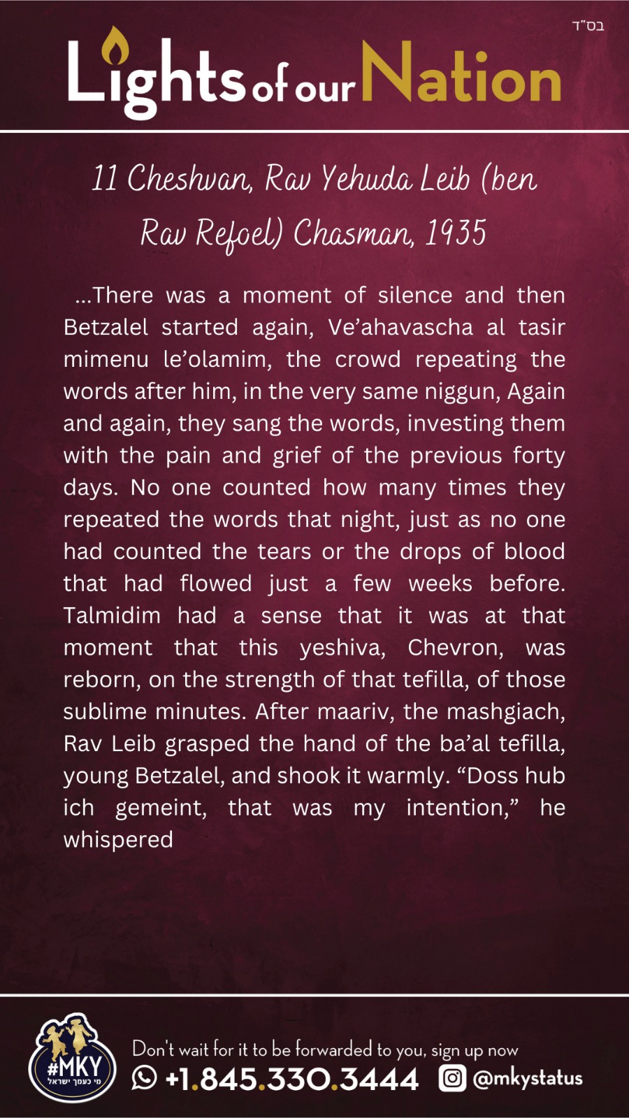 Lights of our Nation: 11 Cheshvan- Rav Yehuda Leib Chasman