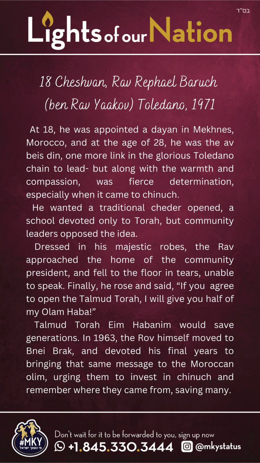 Lights of our Nation: 18 Cheshvan- Rav Rephael Baruch Toledano