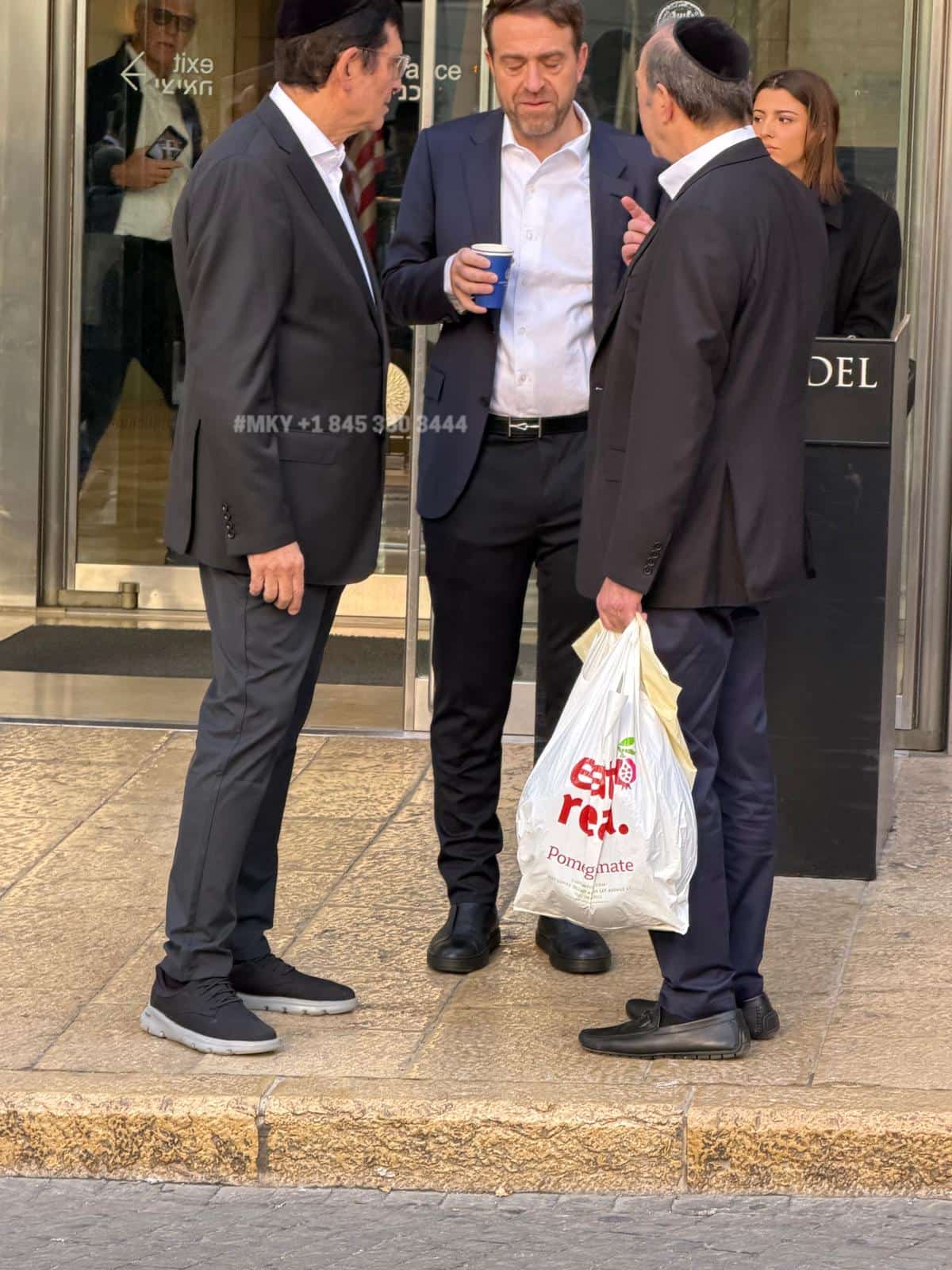 In a Yerushalayim hotel, the maggid shiur and two veteran talmidim. Reb Sruly Bornstein, there leading a Yarchei Kallah for hundreds of talmidim, speaking in learning with Reb Dovi Fishoff and Reb Ali Scharf