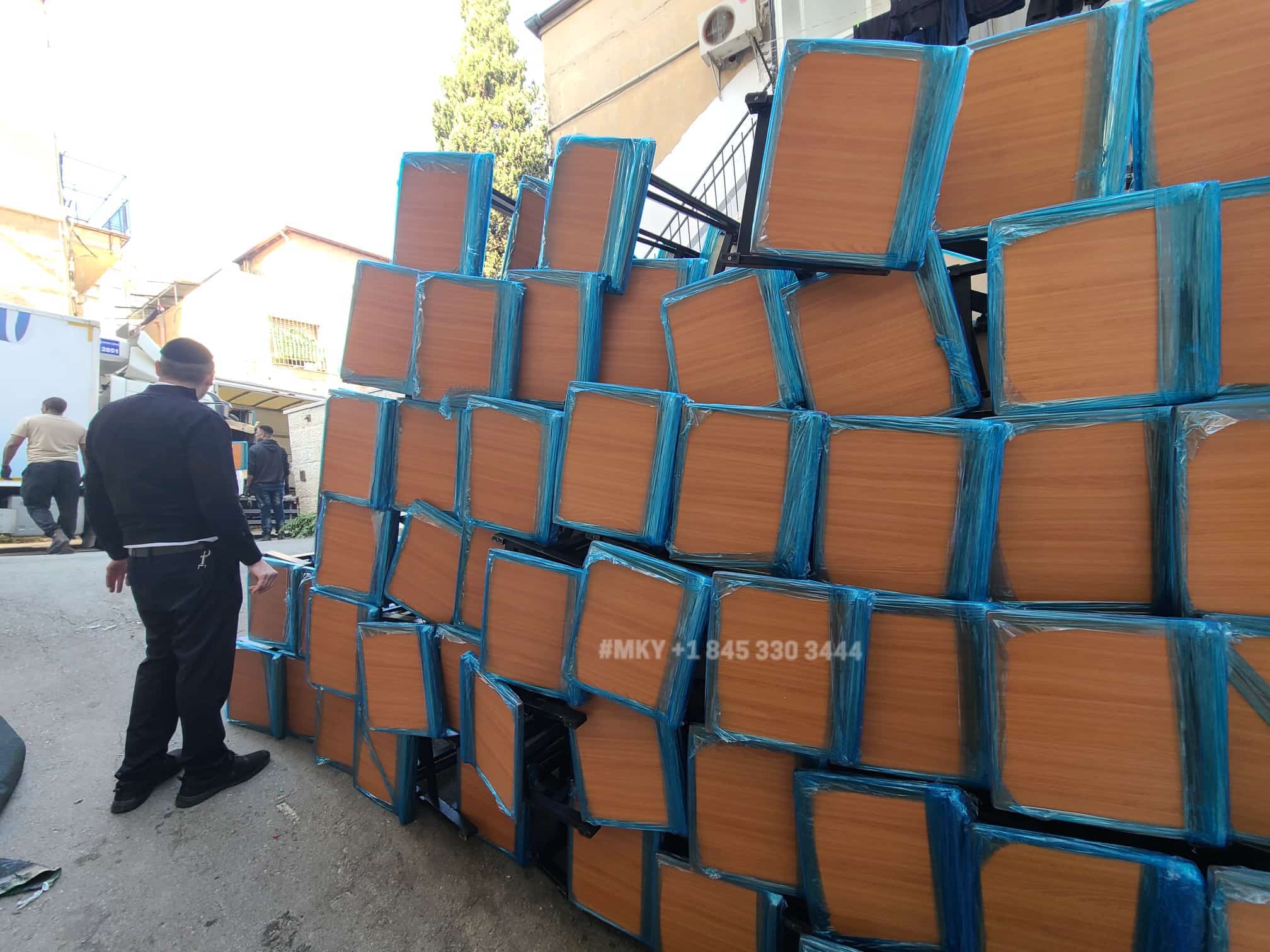 Yesterday it was the shtenders, today it’s the chairs- the Mir prepares to welcome hundreds of returning children