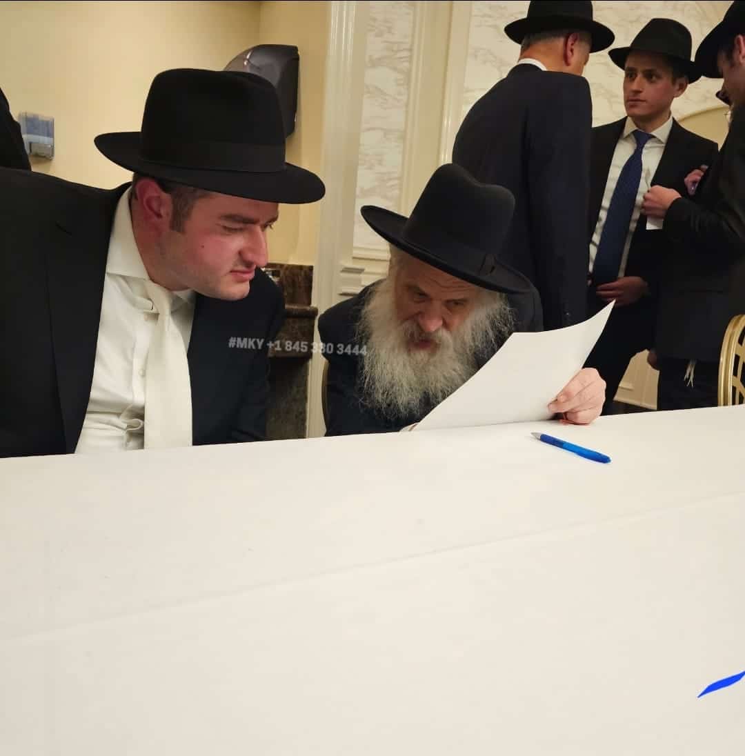 Before the chuppah, Rav Dovid Schustal explains each Aramaic word to the chassan, informing him of the obligation he is about to accept