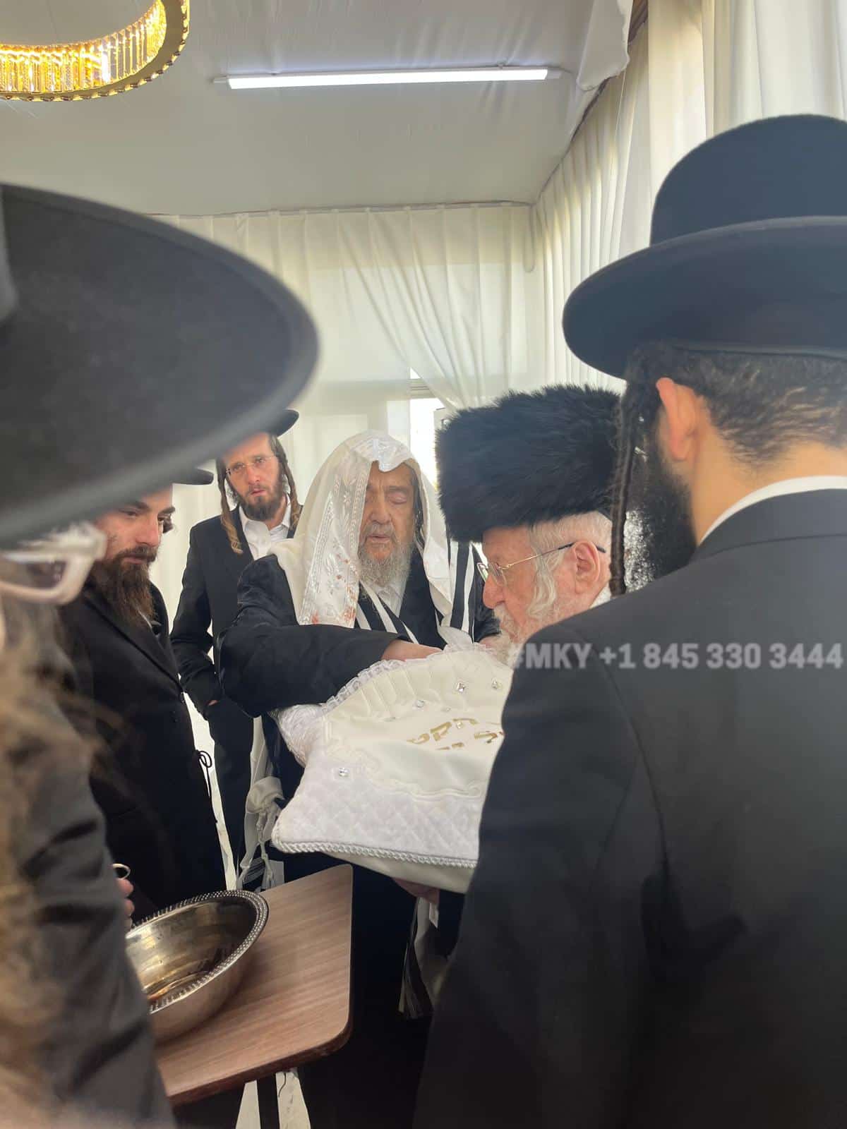 Rav Yaakov Meir Schechter, blessing a child newly welcomed in the bris of Avraham Avinu, after serving as mohel: part of the mornings avodah