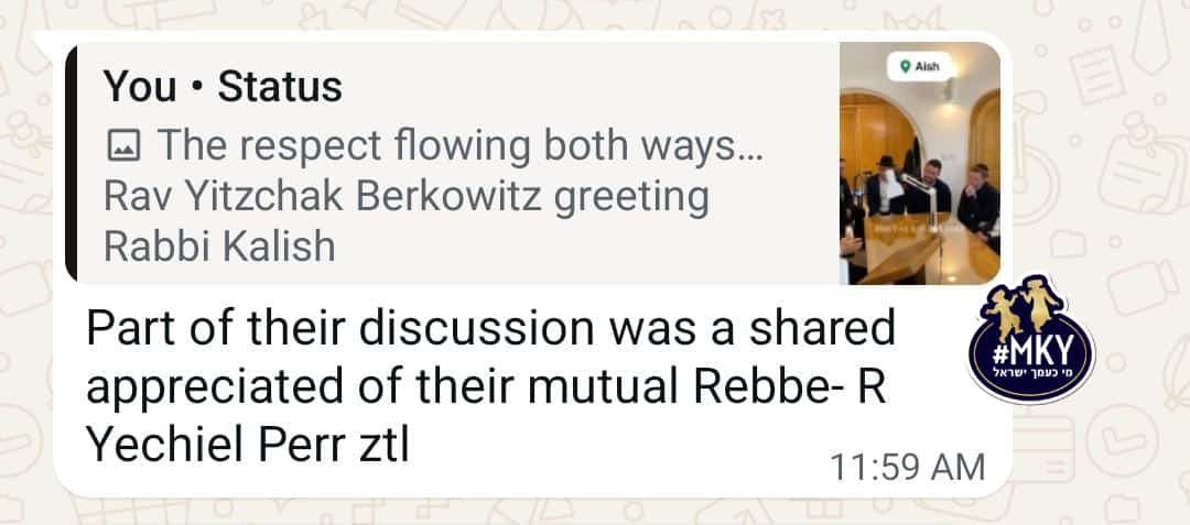 The respect flowing both ways…Rav Yitzchak Berkowitz greeting Rabbi Kalish