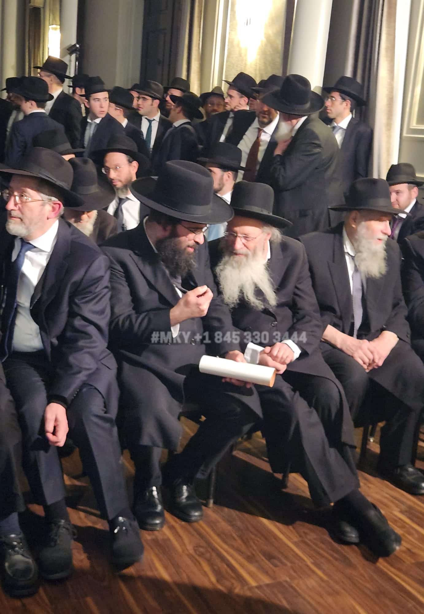 Two people, responsibility for tens of thousands of Bnei Torah: Rav Malkiel Kotler with Rav Shalom Ber Sorotzkin at a wedding in Lakewood last night