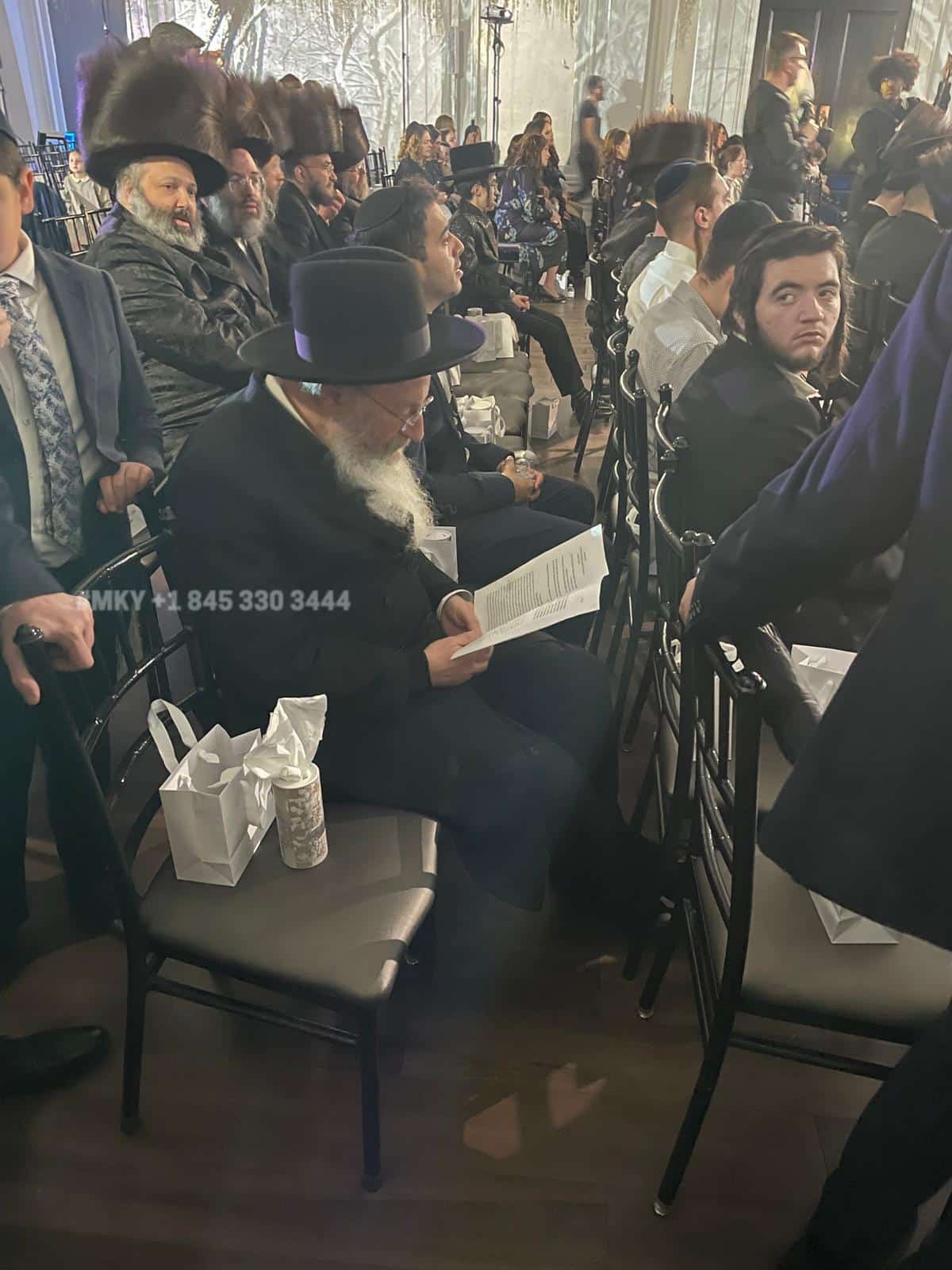 Two people, responsibility for tens of thousands of Bnei Torah: Rav Malkiel Kotler with Rav Shalom Ber Sorotzkin at a wedding in Lakewood last night