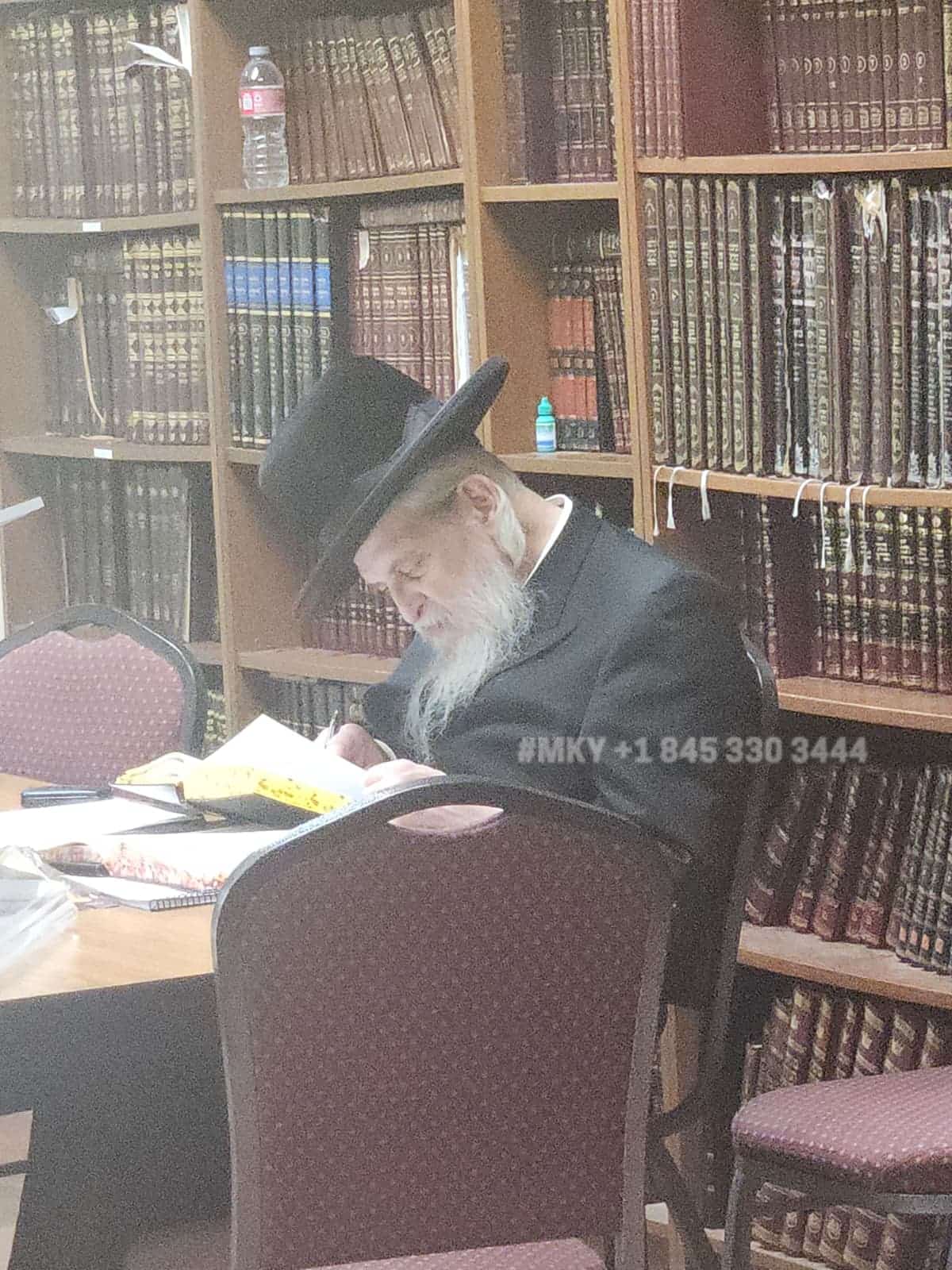 In the quiet Otzar Hasefarim at Ahavas Torah in Scottsdale, the picture of ‘vacation’: Rav Menachem Fisher, the Vienner dayan of Monsey feels at home