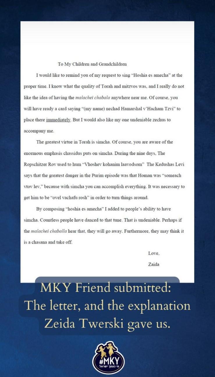 MKY Friend submitted: The letter, and the explanation Zeida Twerski gave us.