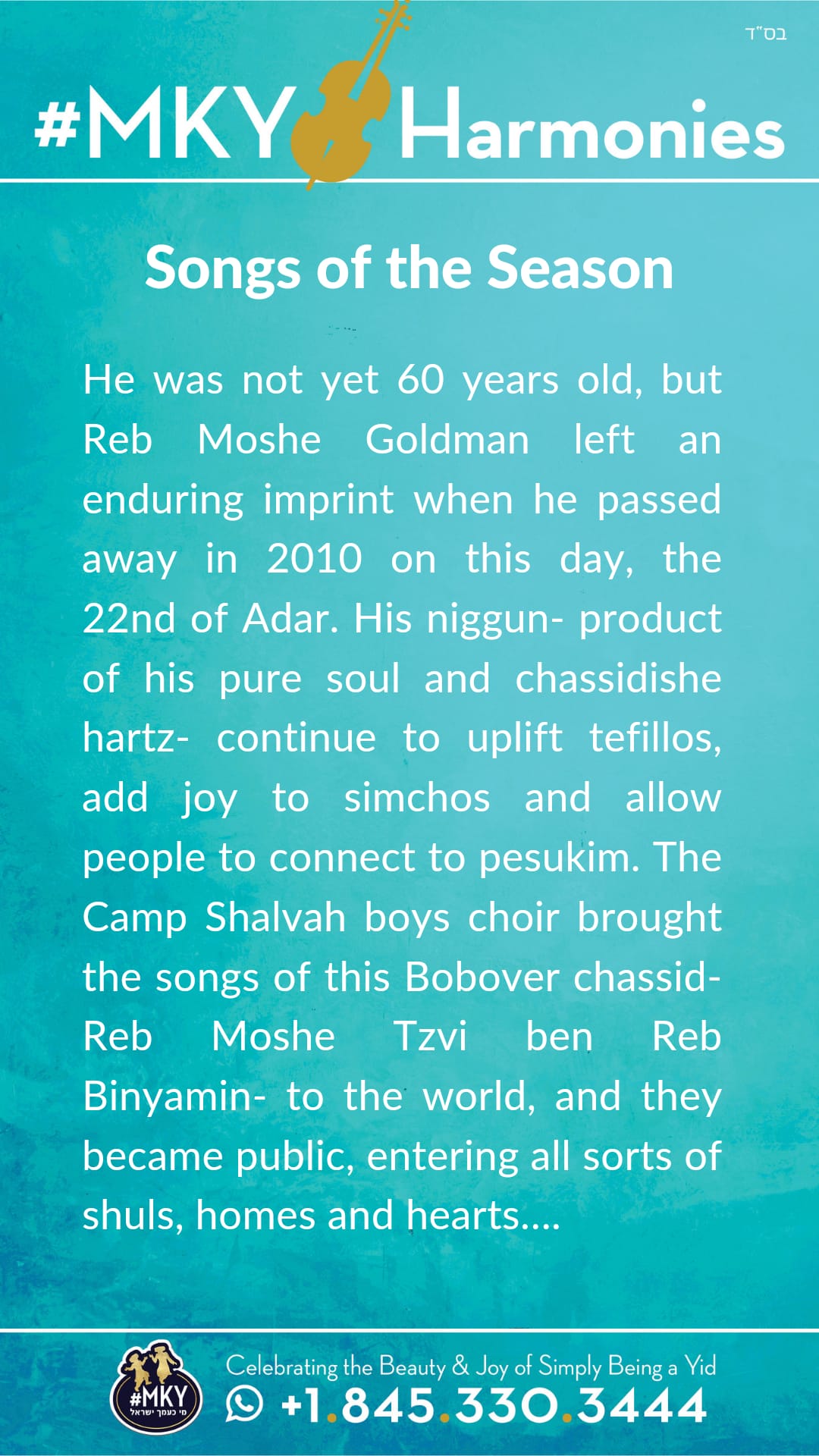 Songs of the Season: Reb Moshe Goldman