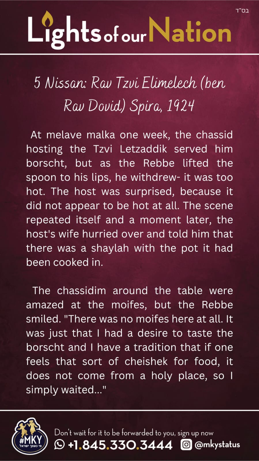 Lights of our Nation: 5 Nissan- Rav Tzvi Elimelech Spira