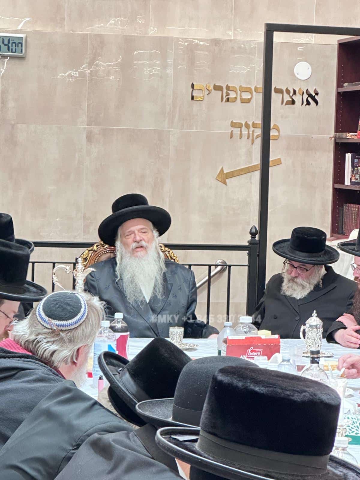 The Rebbe of Bluzhev at the yahrzeit tish for his ancestor, the Zvi l’Tzaddik, last night