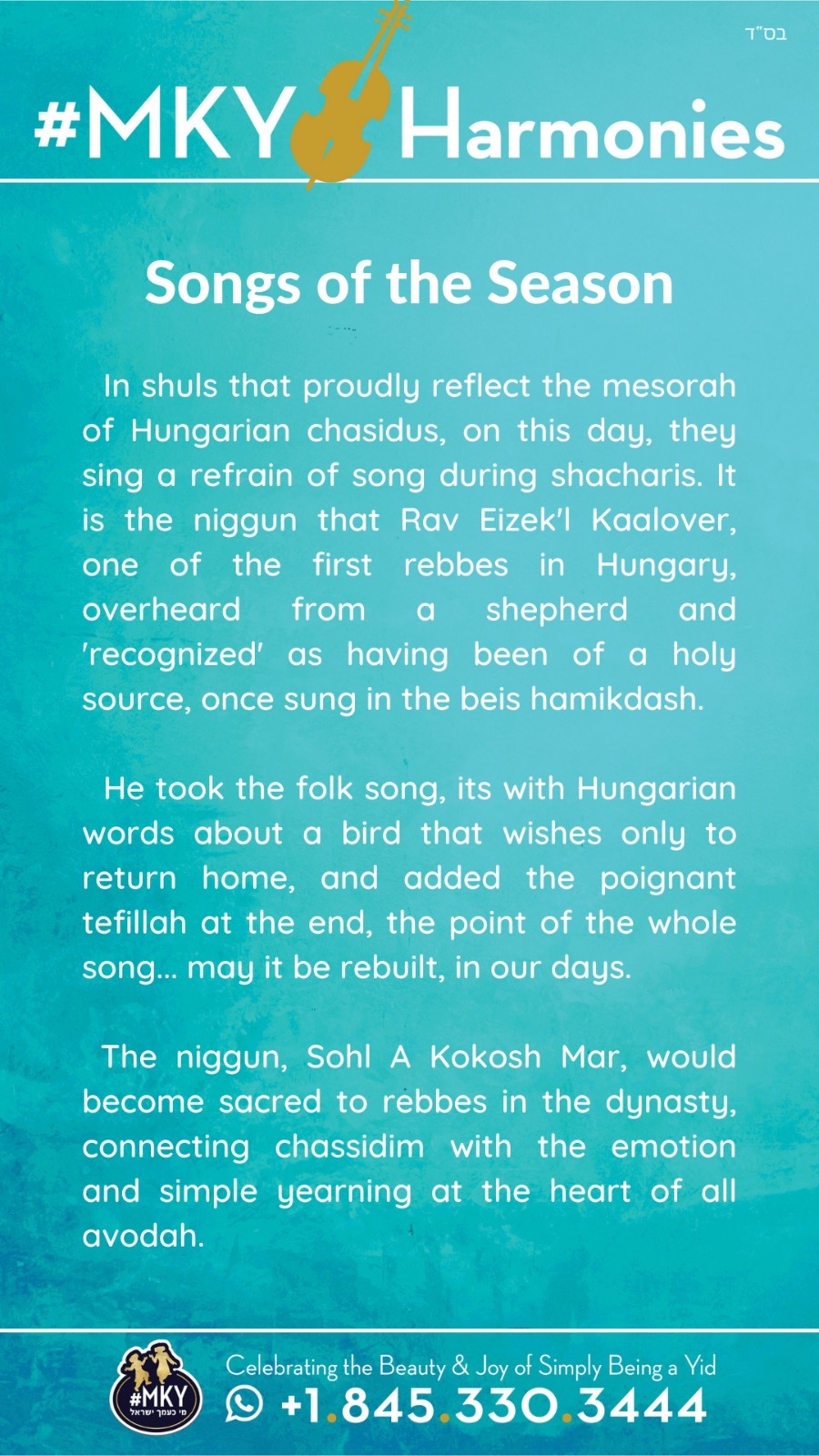 After many requests, including from leading mechanchim and rabbonim, we are excited to share a new frontier for #MKY- a place to share the song of MKY with a world beyond WhatsApp....