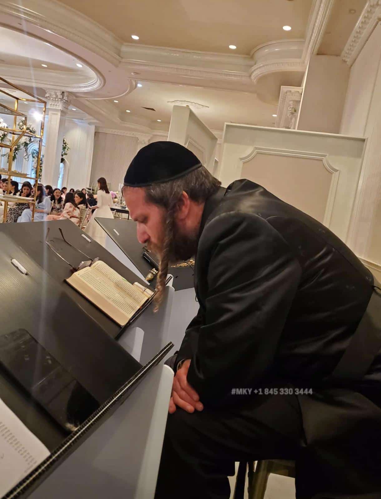 Torah…always: guest clarinetist Chilik Frank from Eretz Yisroel finds time, at a Lakewood wedding, to hear the music