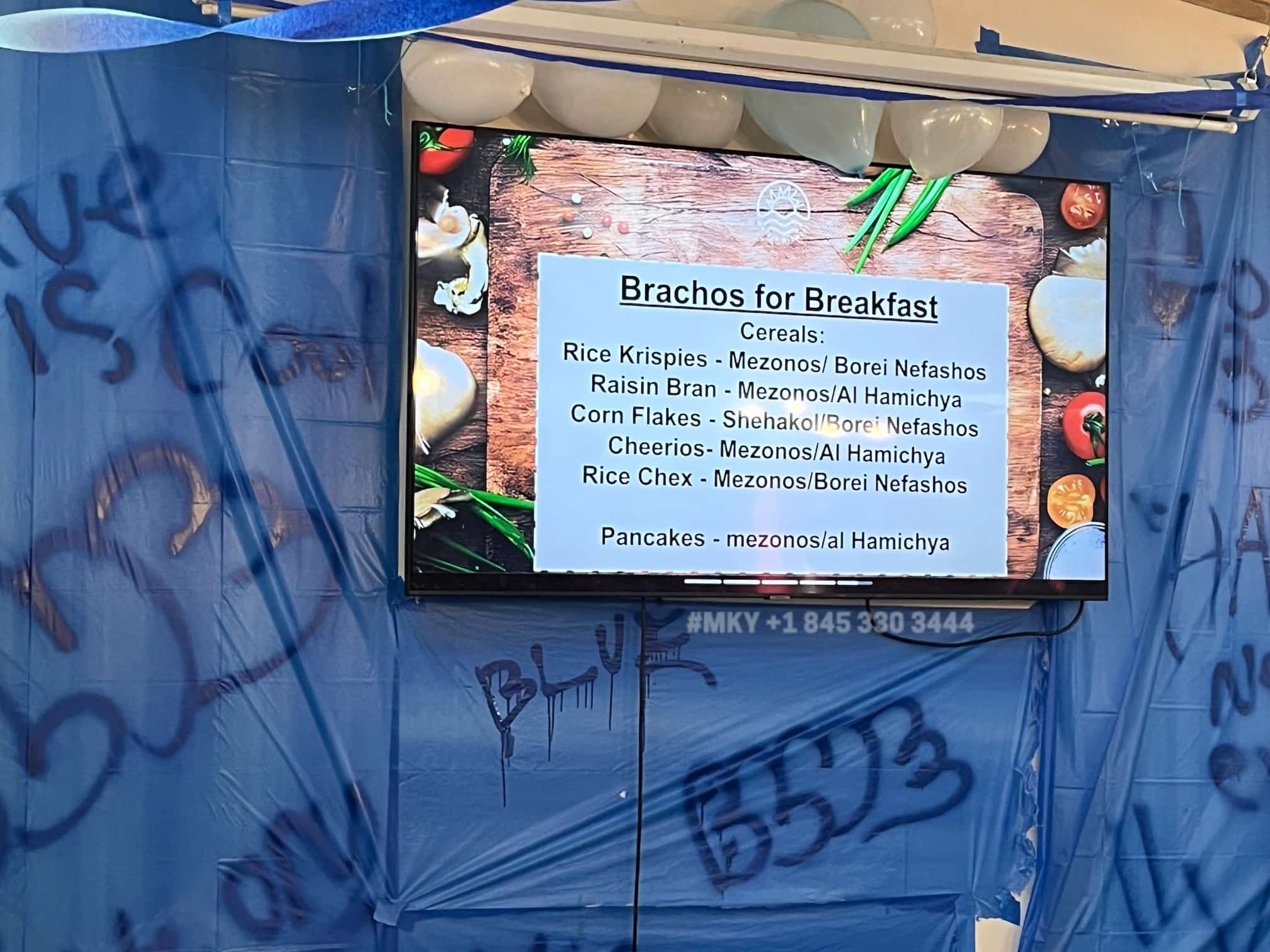 The screen is updated daily with proper brachos according to the menu of the day @Camp Matziv Midwest