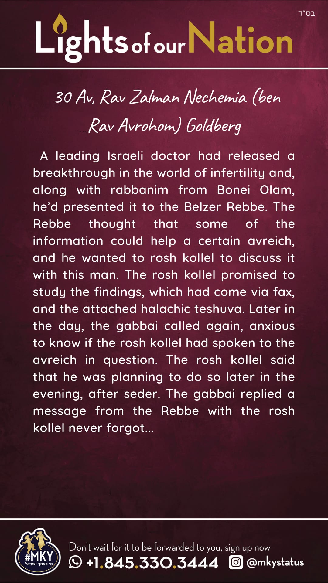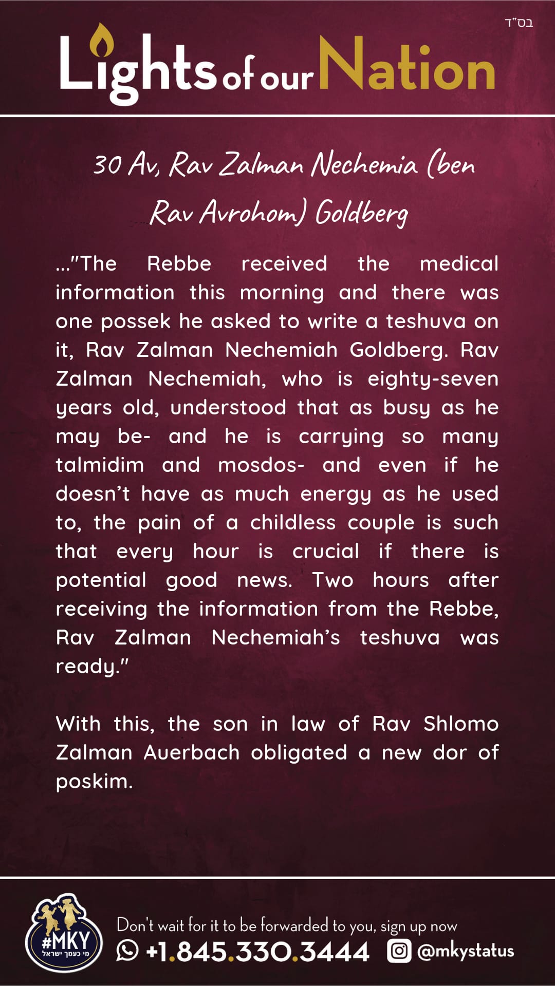 Lights of our Nation: 30 Av- Rav Zalman Nechemia Goldberg