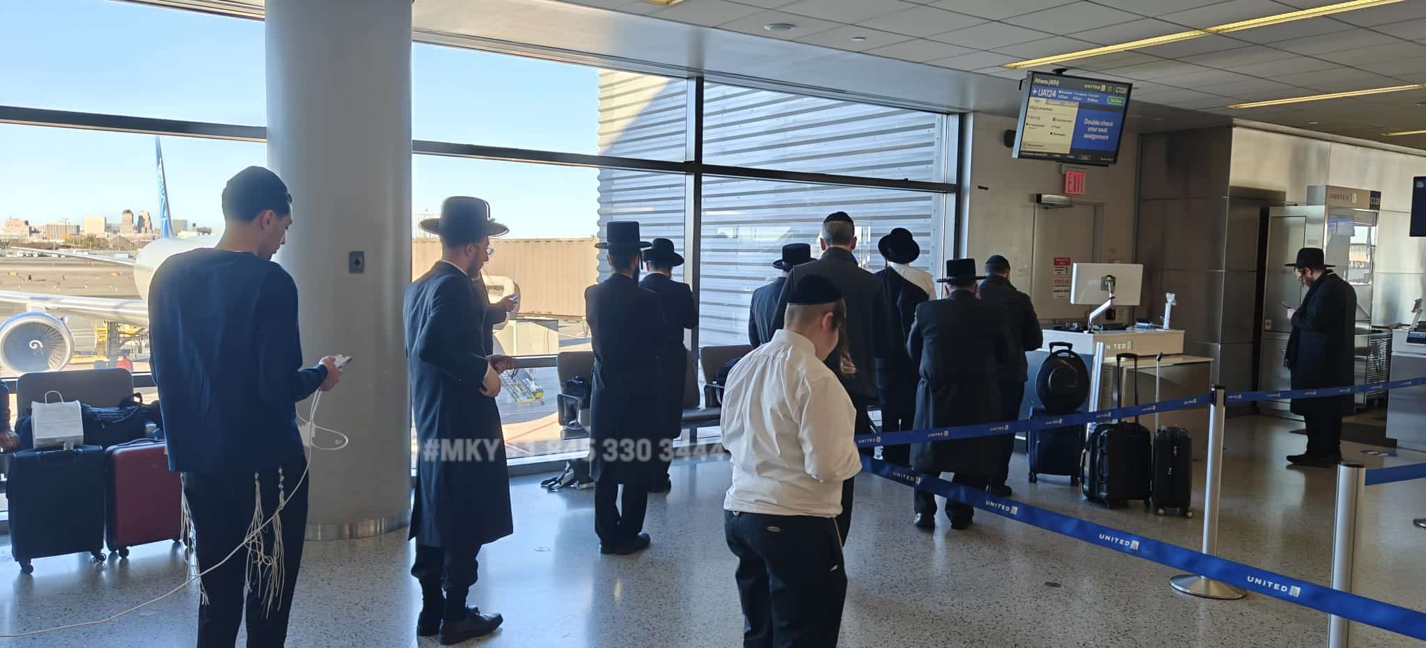 At Newark Airport: they sit idly at the gate, while we open gate, minyan after minyan, all through the afternoon