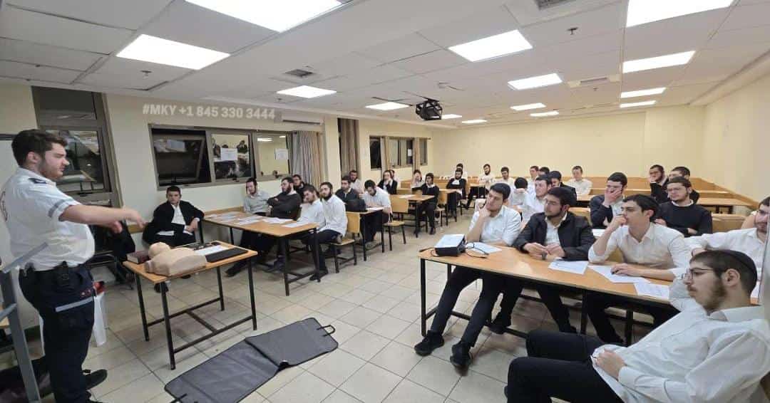 At the Chabad Yeshiva in Elad, Nittel nacht, when it is traditionally forbidden to learn Torah, put to good use with the bochurim learning CPR and first aid