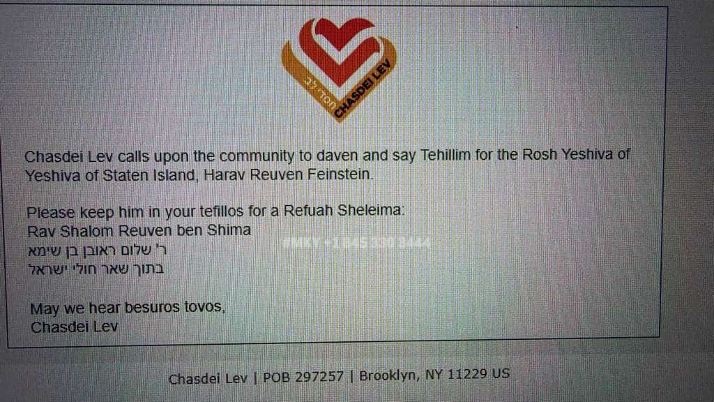 A request from an organization of heart, asking people to open hearts and daven for a Rosh Yeshiva who gives heart and soul to Klal Yisroel