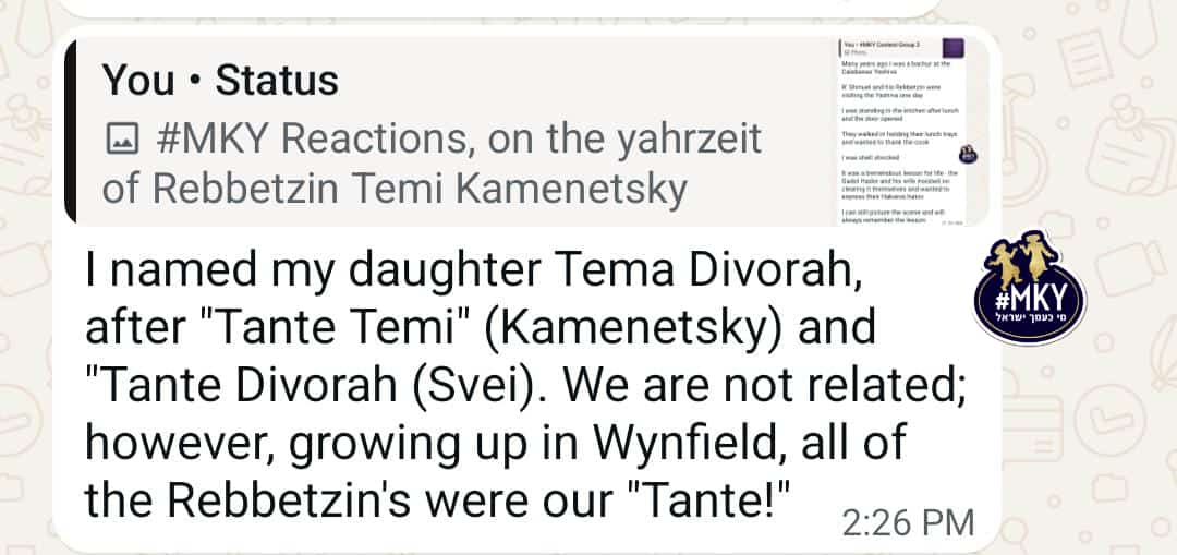 #MKY Reactions, on the yahrzeit of Rebbetzin Temi Kamenetsky