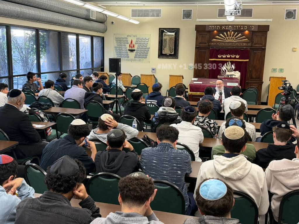 Erev Shabbos at Valley Torah High School in California, Rav Avrohom Stulberger Rosh Yeshiva delivers the weekly shmuess - just two weeks after undergoing open heart surgery, words of mussar and chizuk against a backdrop of gratitude