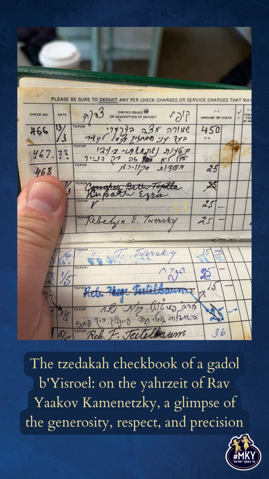 The tzedakah checkbook of a gadol b'Yisroel: on the yahrzeit of Rav Yaakov Kamenetzky, a glimpse of the generosity, respect, and precision