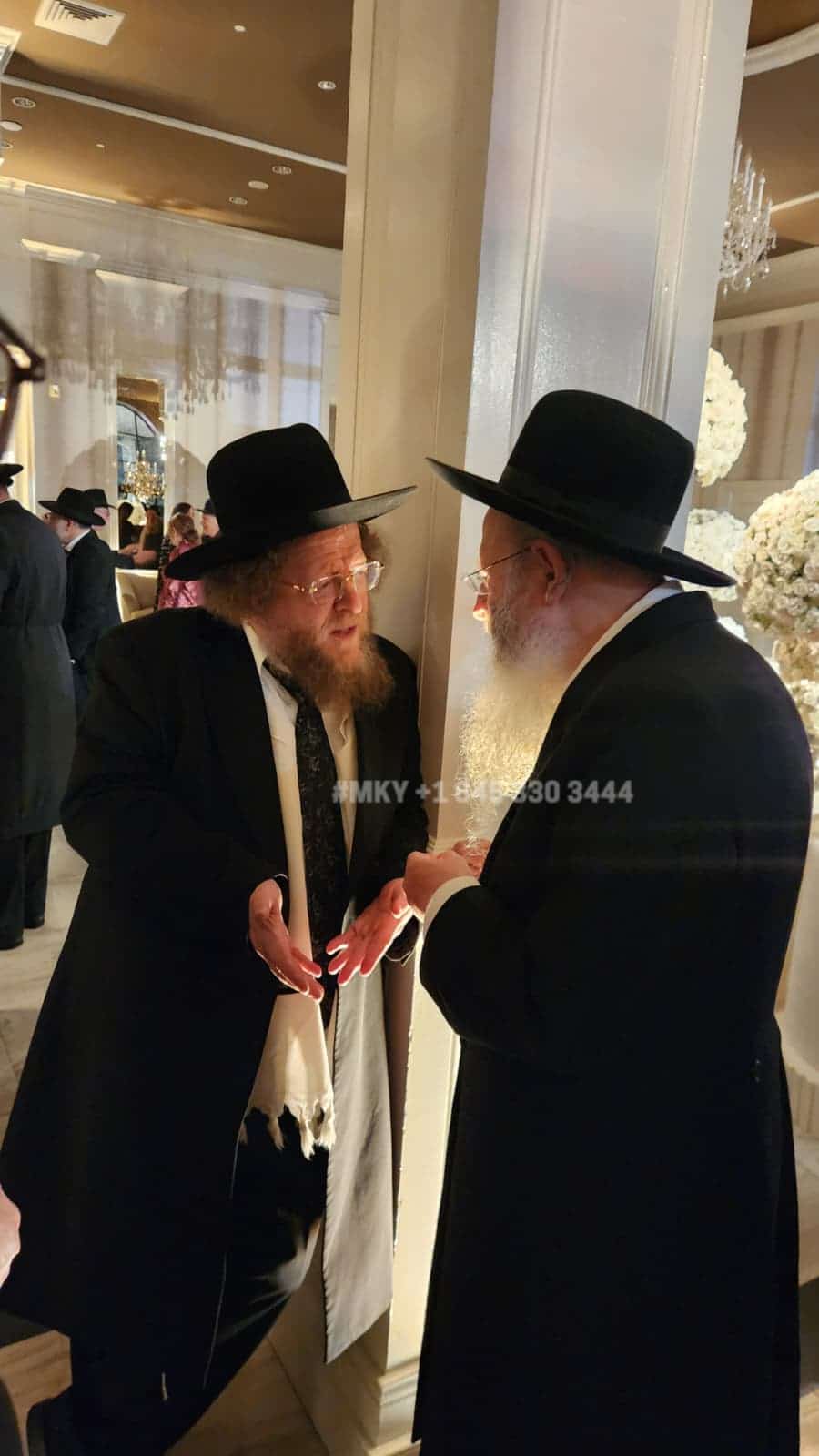 Two people, responsibility for tens of thousands of Bnei Torah: Rav Malkiel Kotler with Rav Shalom Ber Sorotzkin at a wedding in Lakewood last night