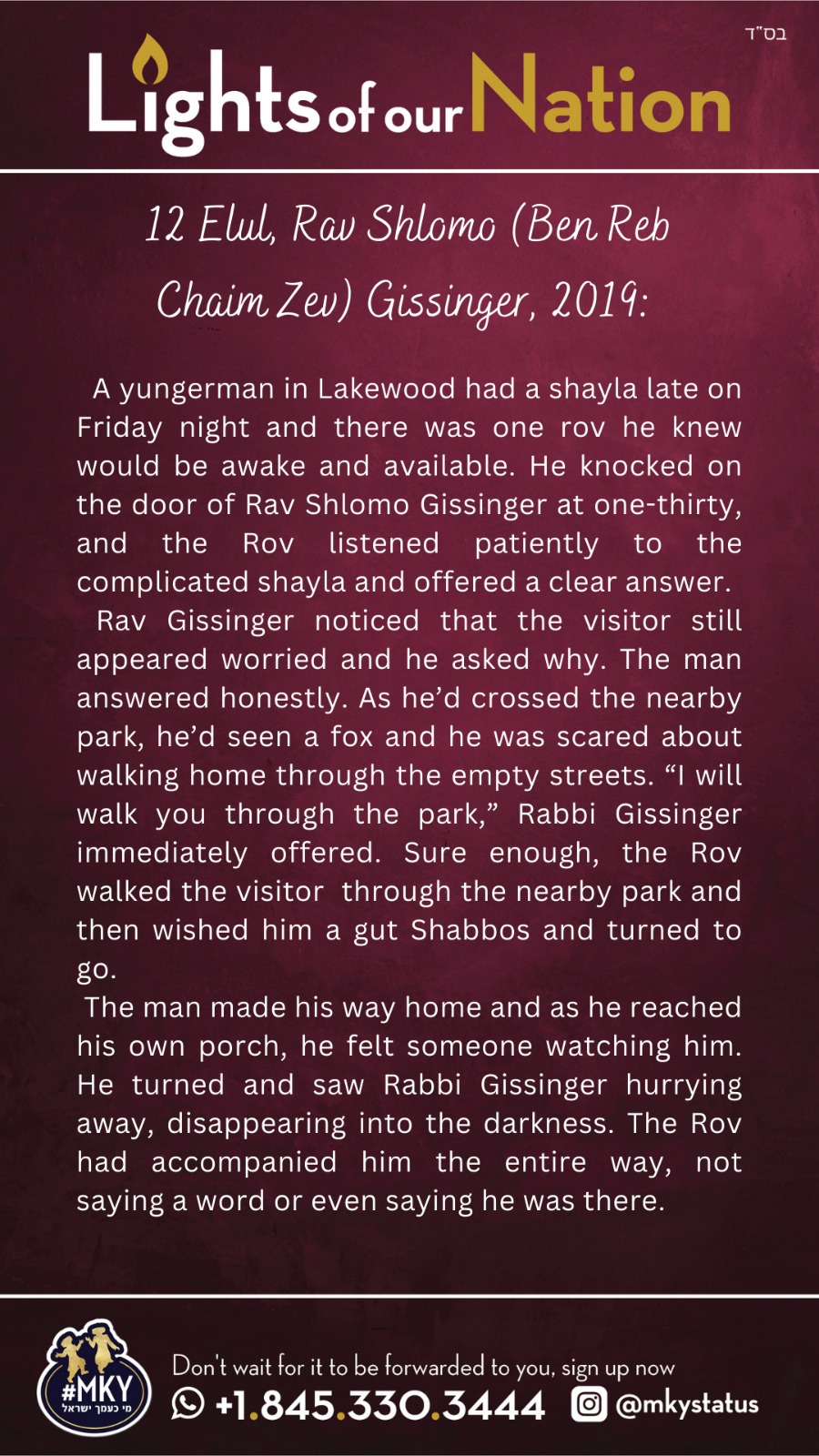 Lights of our Nation: 12 Elul: Rav Shlomo Gissinger